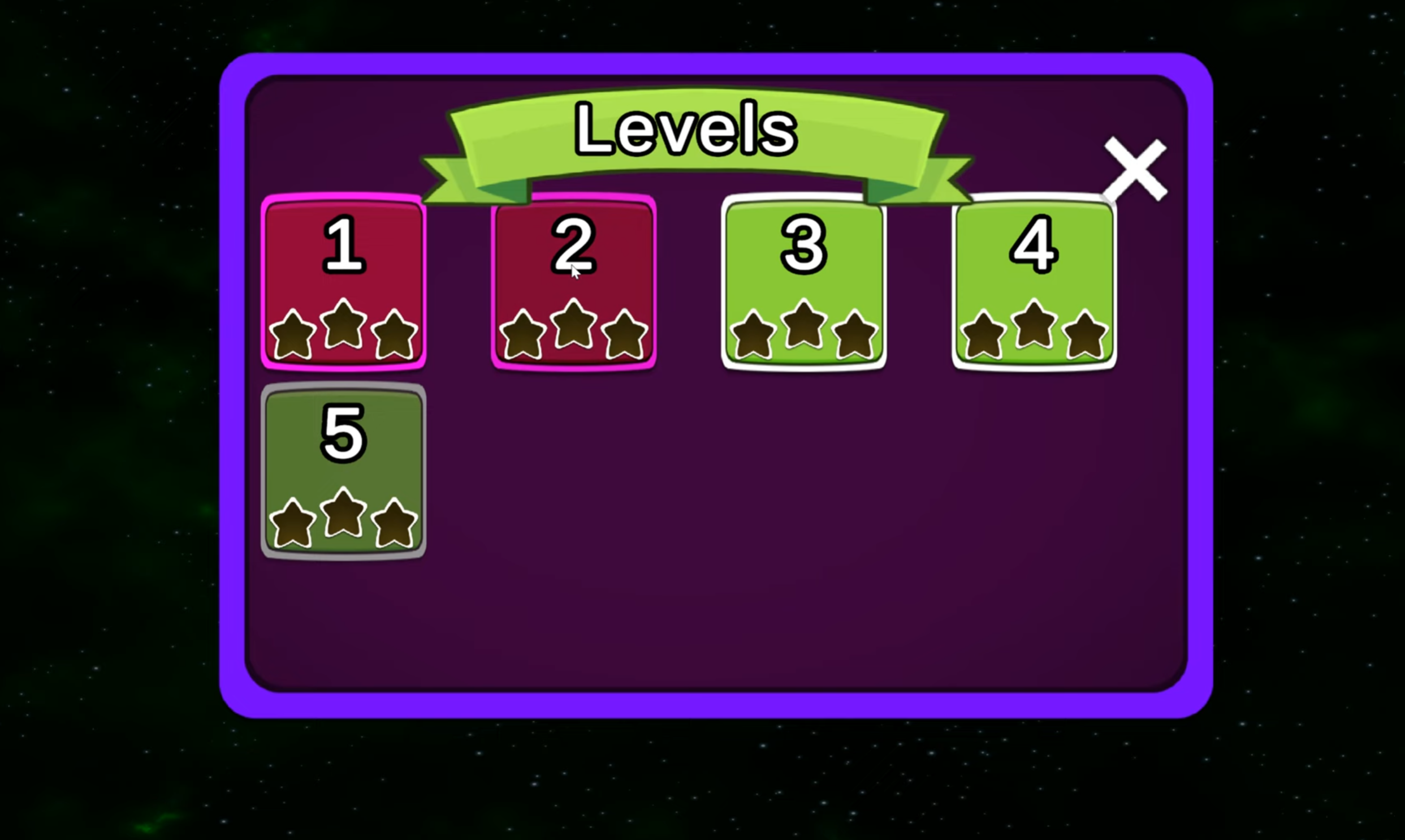 - Level 5 is disabled as it is unfinished.